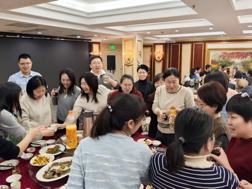 陳明人互相交談著,增進(jìn)了部門與部門之間,上級與下級之間的相互了解,增強了團(tuán)隊凝聚力,整個餐廳都彌漫著陳明集團(tuán)這個大家庭的暖意。整個聚餐聯(lián)歡在同事們的明七暗七的娛樂中落下了帷幕!